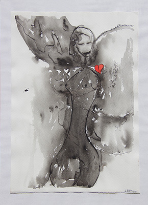 Angefangen hat es mit einem Unglück einer Freundin, sie hatte Gehirnblutungen. Wir Bekannte und Freunde haben sie energetisch unterstützt. Ich habe meditiert, an sie gedacht und ein Bild gemalt… Das Ergebnis war ein Engel, der ihren Kopf in Händen hält.